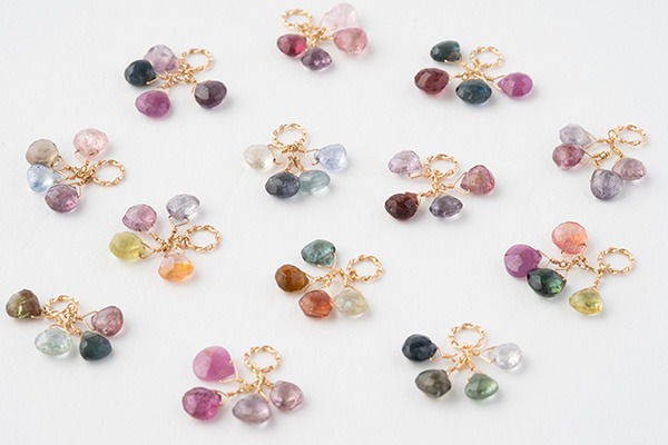 サファイヤといえば青の印象が強いですが、実はピンク・イエロー・グリーンなど、さまざまな色彩を持っています。複数のカラーを組み合わせることで、ひとつのチャームに“物語のようなグラデーション”が生まれます。