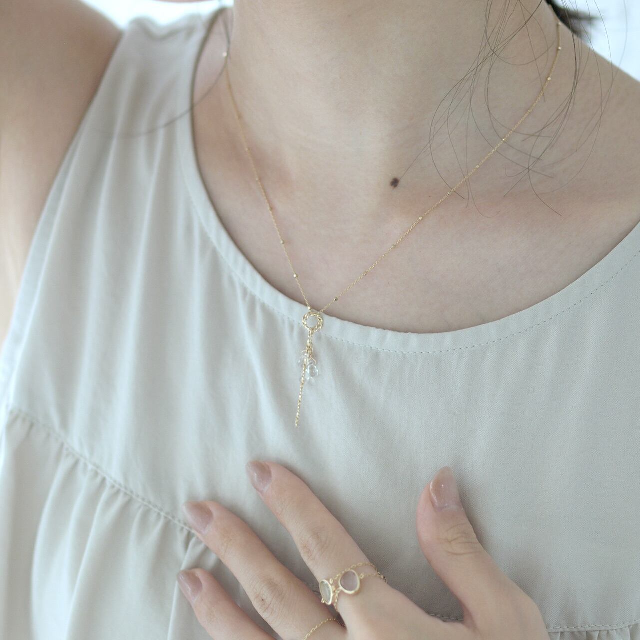 アジャスター付きで丸カンを引き輪に通すと37cmのネックレスになります。