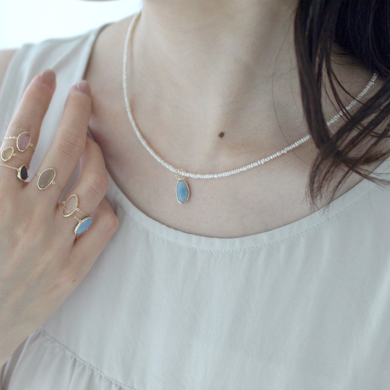 天然石使用のものは色や形状、大きさ、内包物、風合い、若干の傷に個体差があります。