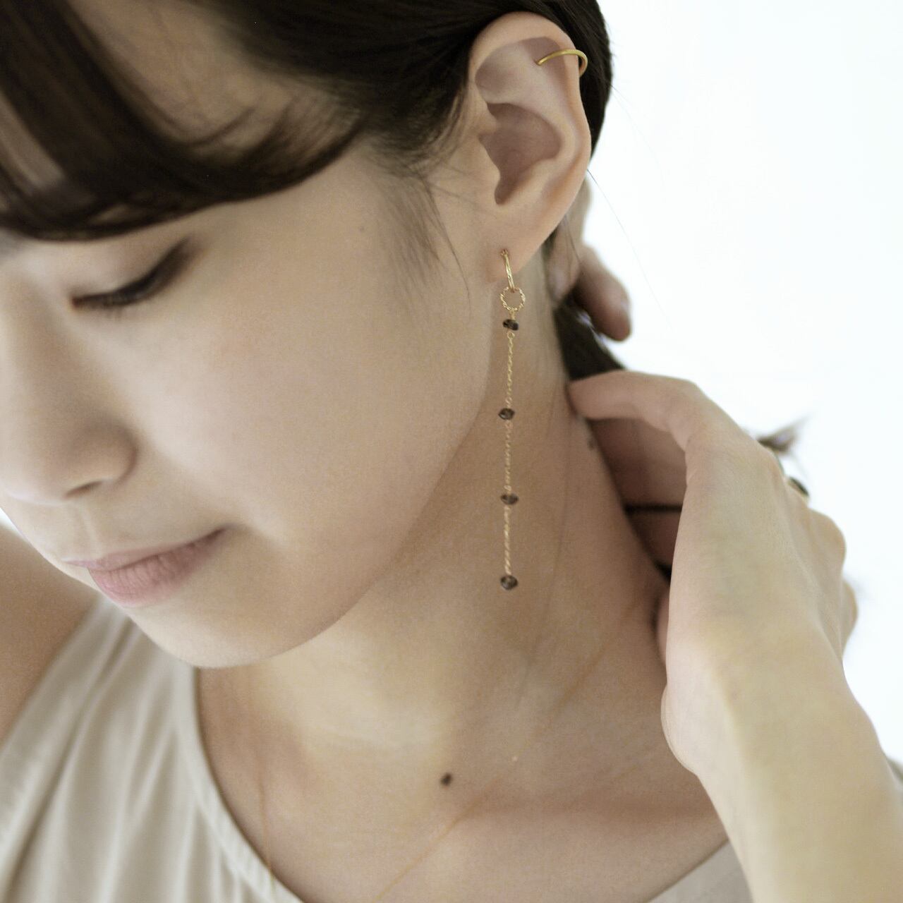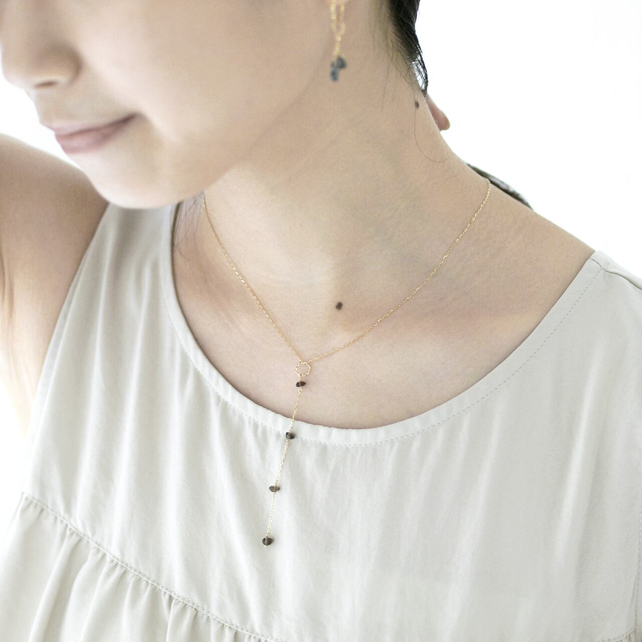 スモーキークオーツ4石xチェーンチャーム/K10YG