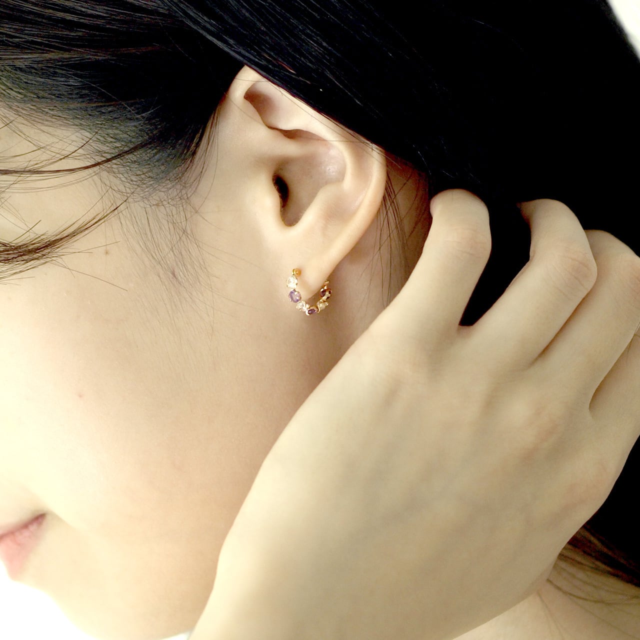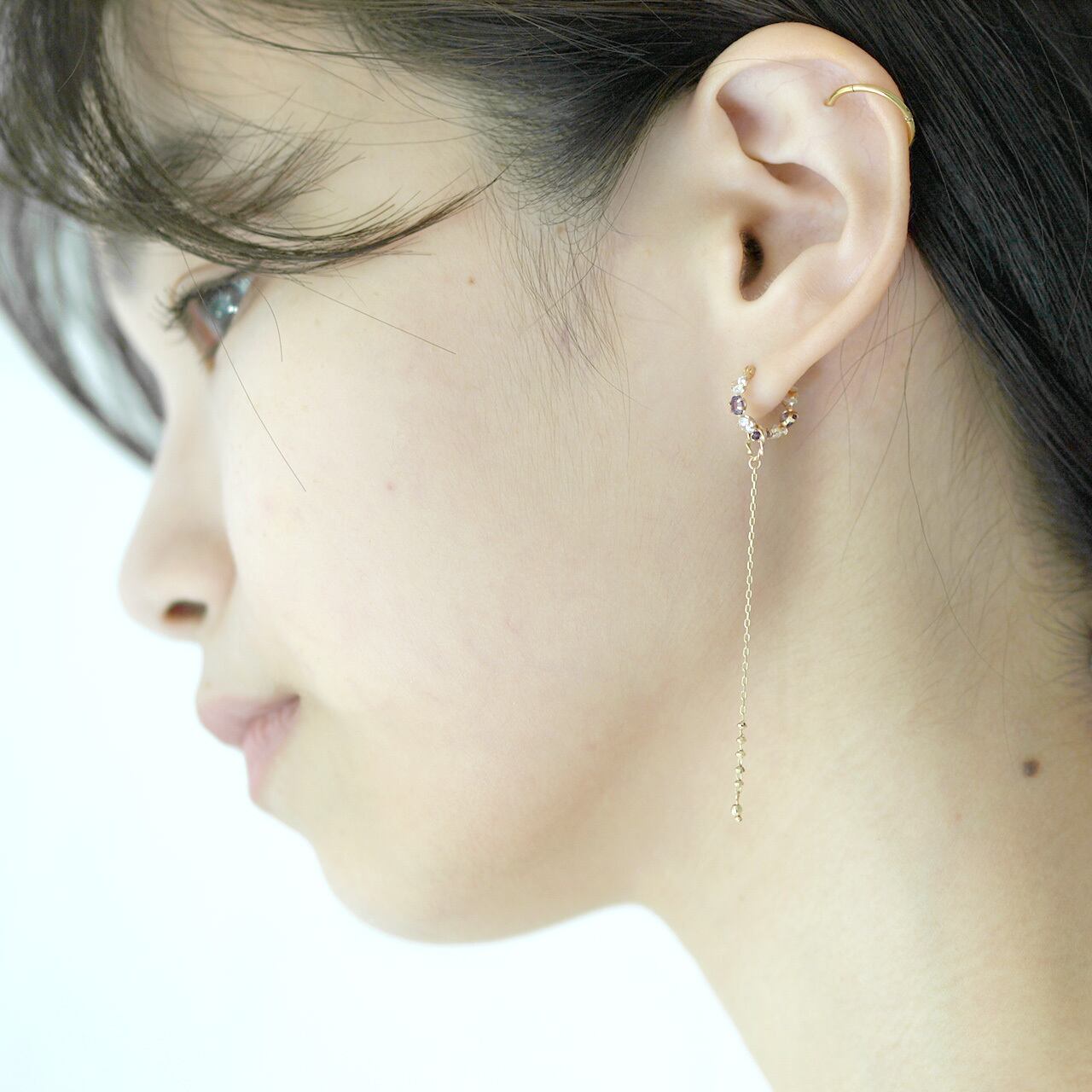 アメジストxCZフープピアス/K10YG