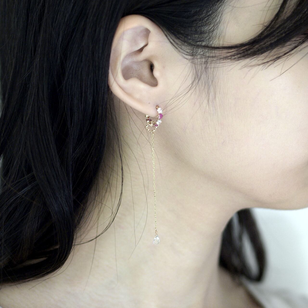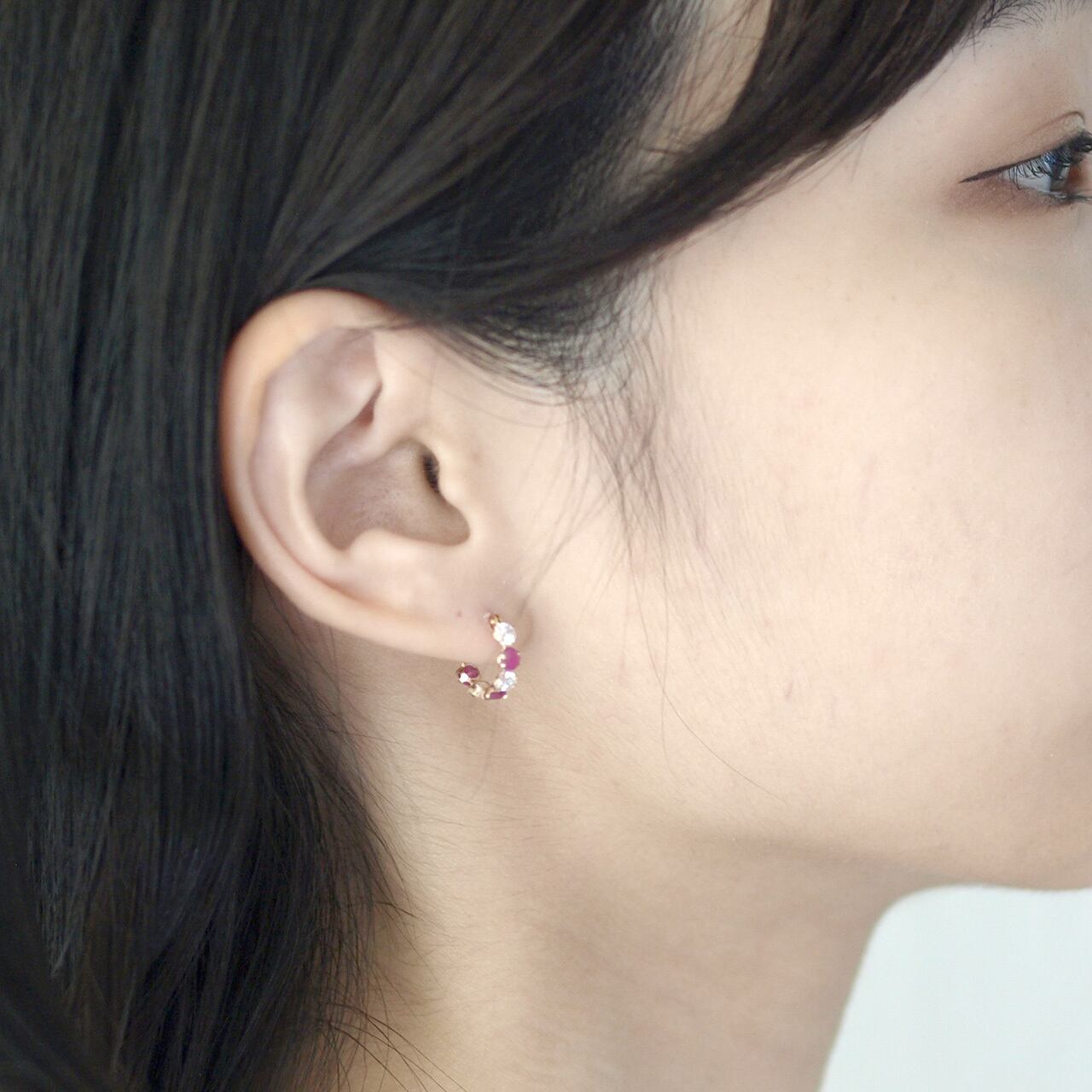 ルビーの持つ深い色とキュービックジルコニアの輝きが耳もとい鮮やかな彩りを加えてくれるアイテムです。