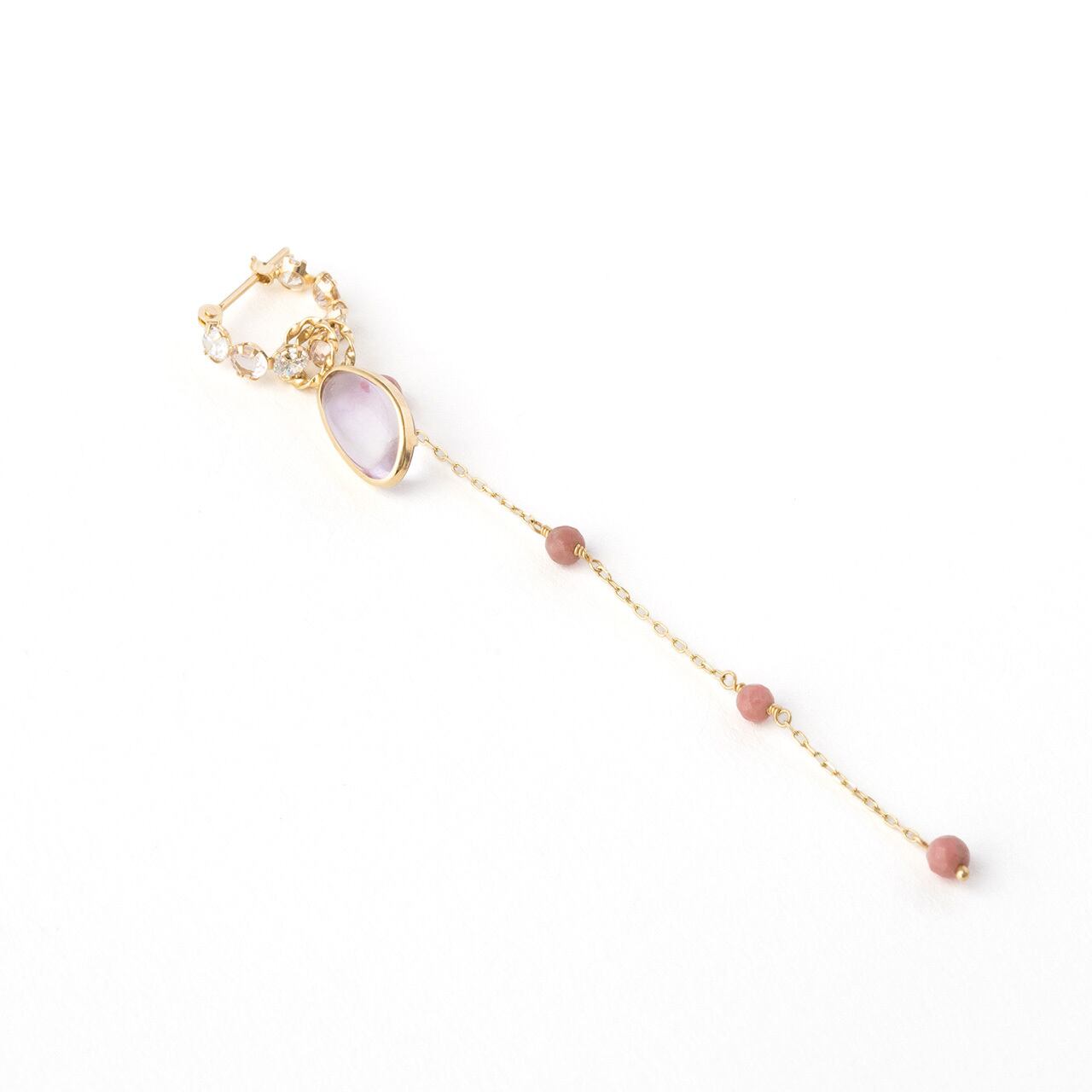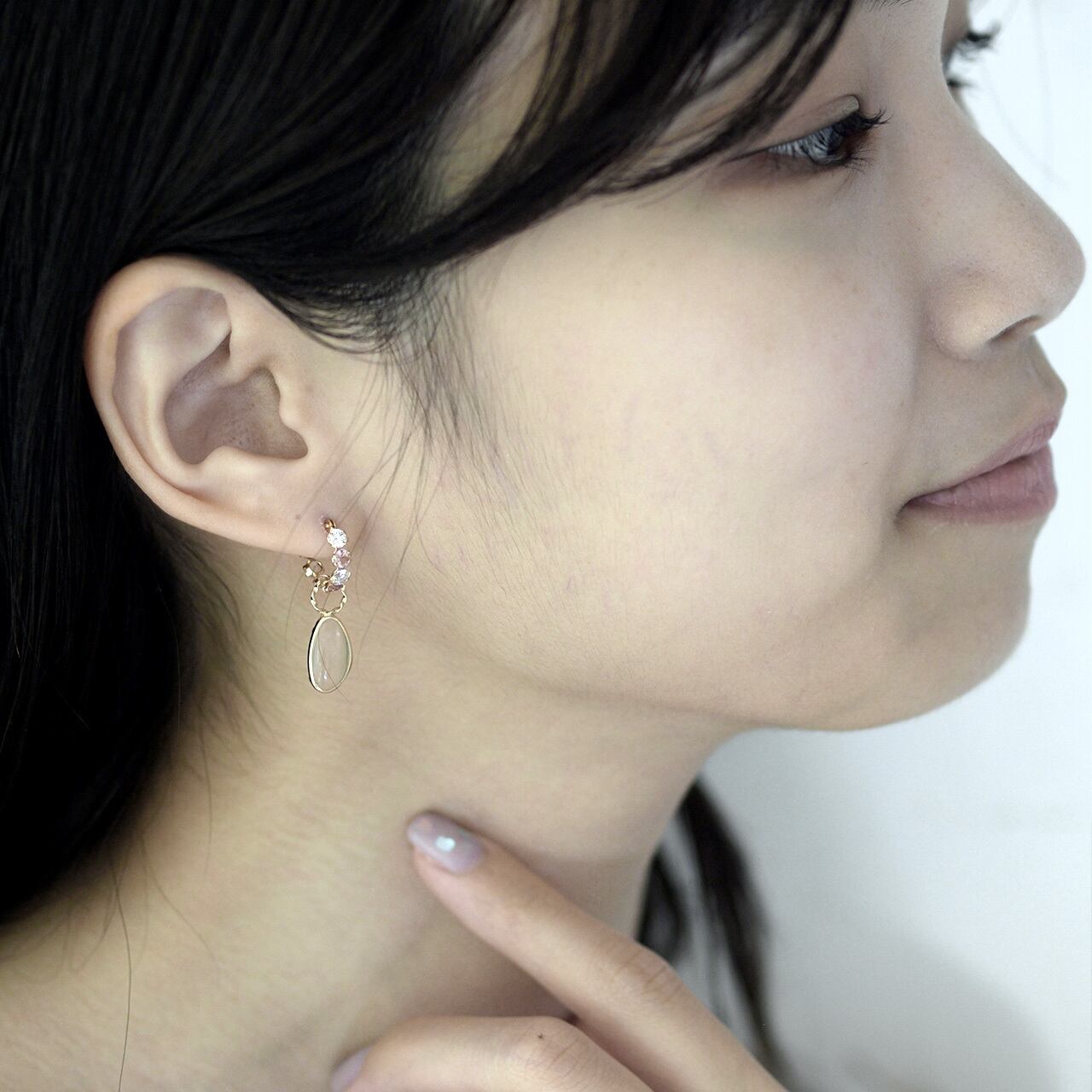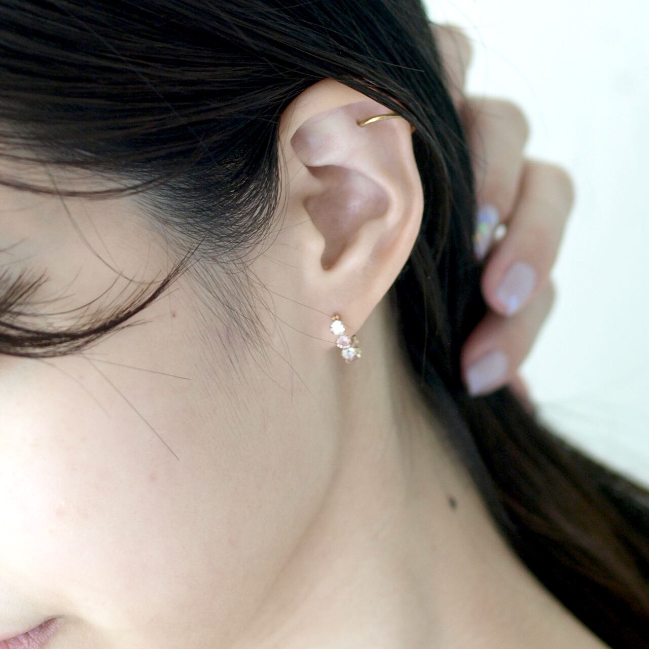 ピンクトルマリンの持つ優しい色とキュービックジルコニアの輝きがかわいらしい耳元を演出。